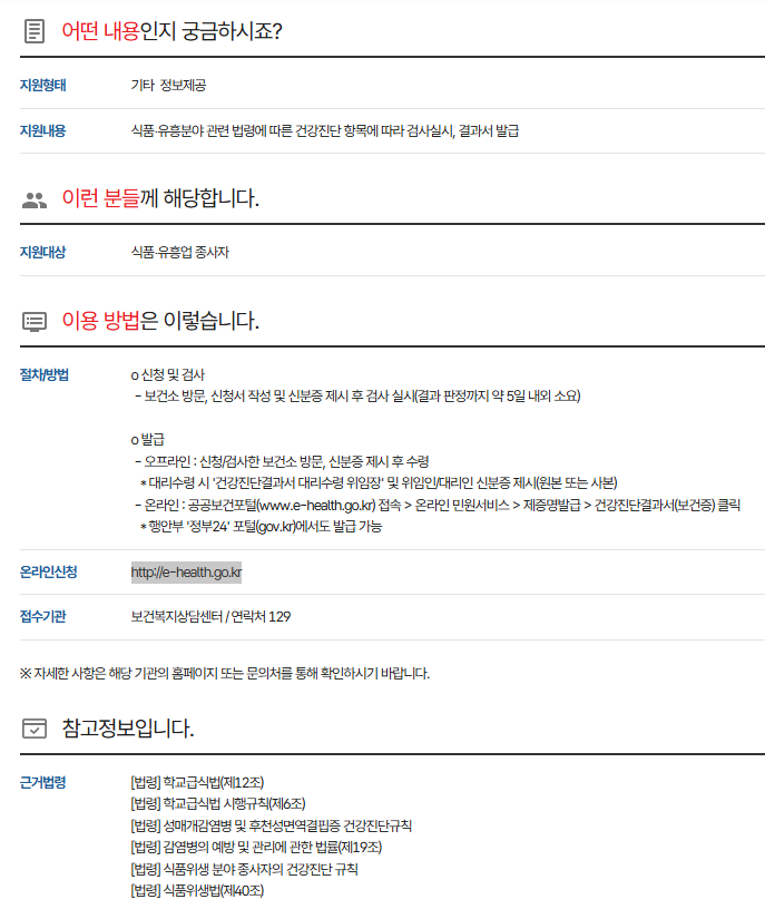 우선 보건증 인터넷 발급은 '건강진단결과서' 검사를 받은 이력이 있어야 합니다.