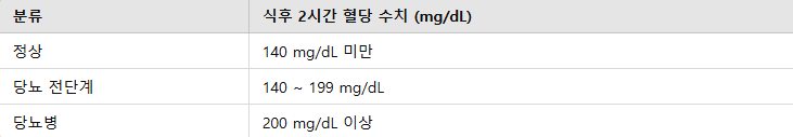 - 식사 2시간 후: 160 mg/dL